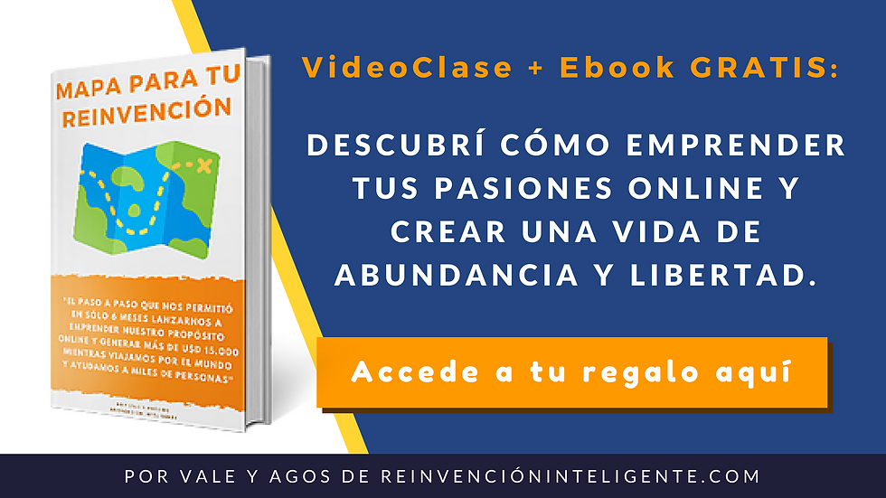 Todo lo que necesitas saber, más el paso a paso que nos permitió tan rápidamente emprender con éxito nuestras pasiones en internet, lo hemos empaquetado una VideoClase y un Ebook gratuitos llamados “El Mapa para tu Reinvención”.